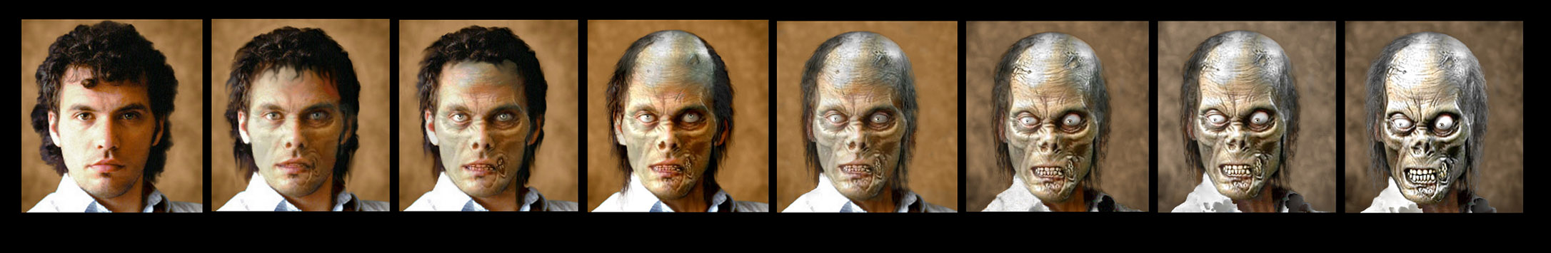 This is a series of illustrations taking a normal face and progressing to something very different. Part of final stage based on a sculpt by Wayne Toth.