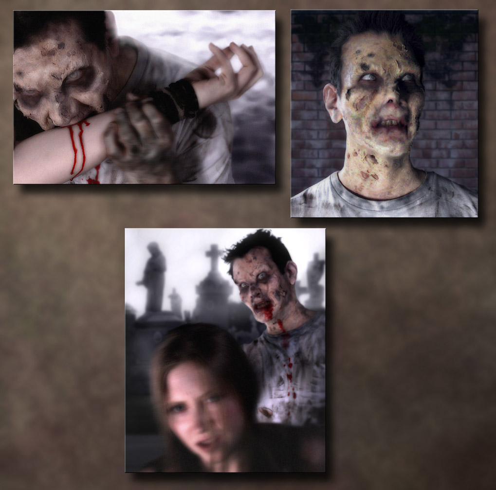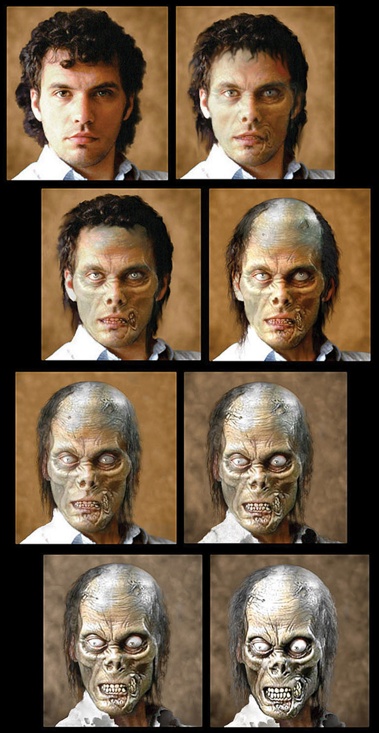 Paintings over photograph to demonstrate character progression: