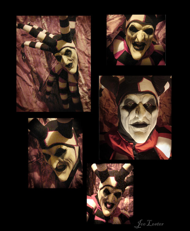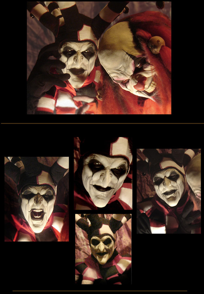 The makeup is designed to work in conjunction with the patterns and colors of the costume.